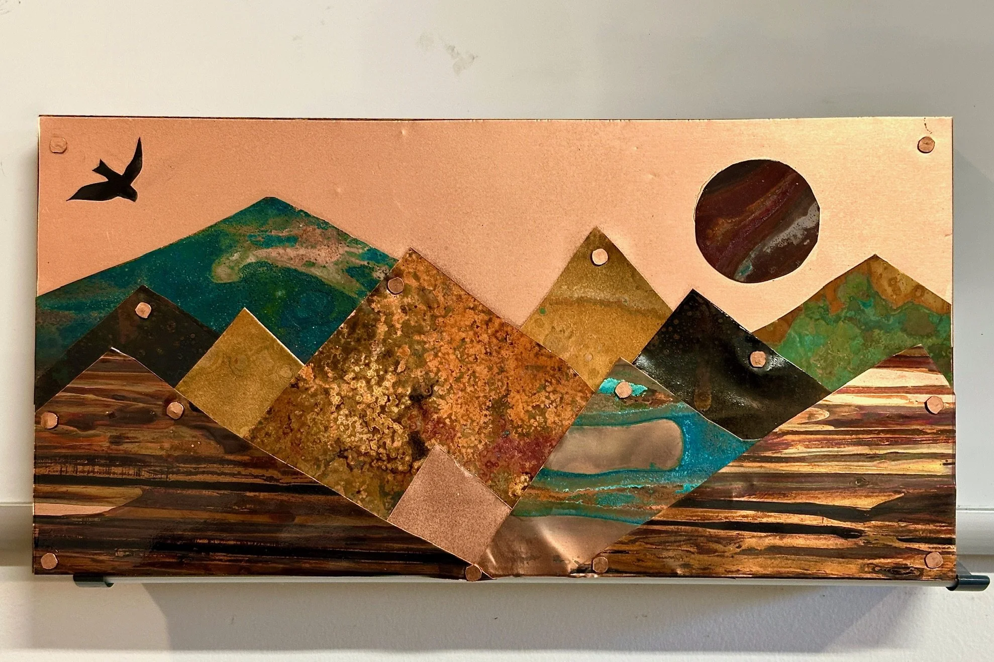 This 2 panel mural can be seen at The Silver Fox Gallery, Hendersonville, NC. Copper Art Murals are one of a kind, unique art pieces that can create a statement piece in any room in your house.